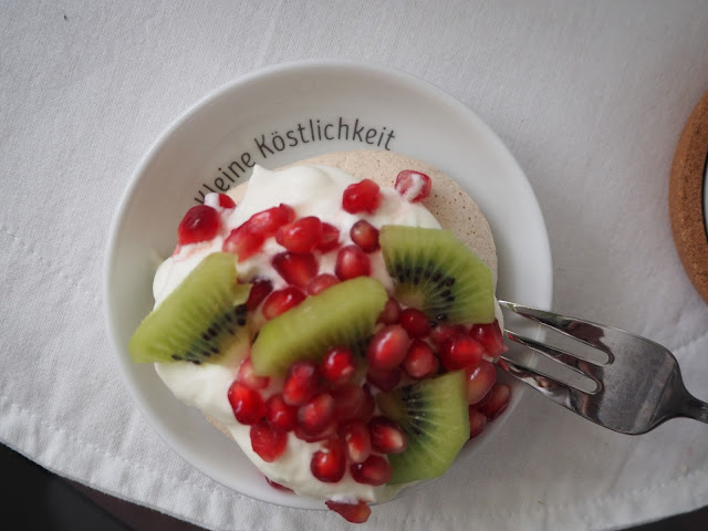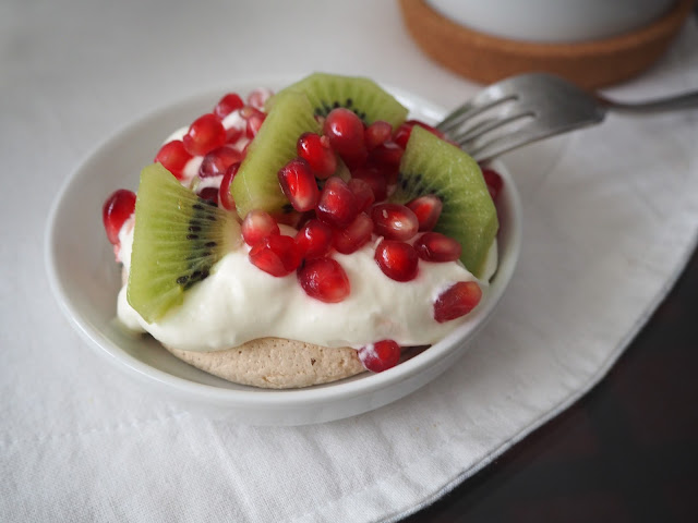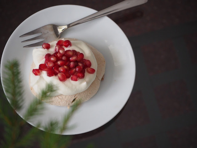… věřila jsem, že mi tato kombinace chutnat bude a chutnala. Pavlova s jahodami je pro mě bezkonkurenční, ale na léto. Granátové jablko a kiwi je prostě výborná varianta na zimu …
