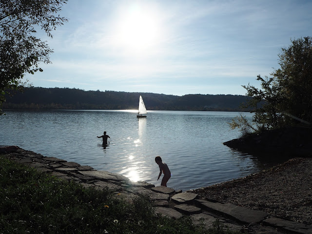 … i když voda není moje nejoblíbenější disciplína se všemi kluky jsem chodila na plavání kojenců a batolat. S velkými kluky déle než s Bertíkem. S tím jsme skončili, když měl dva roky. Změnili se podmínky a už jsme tenkrát vhodný kurz nenašli. Jsme ráda, že všichni tři kluci a taky Bertíkův tatínek to mají s vodou úplně jinak. Plavou si a řádí ve vodě, dokud se jim chce, i když není zrovna vedro. Foto dole je z 15.10.2017. Venku sice bylo kolem 20°C, ale teplotu vody raději znát nechci ? …