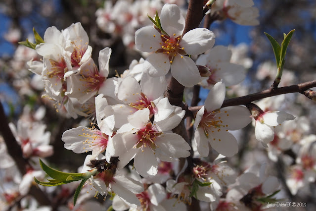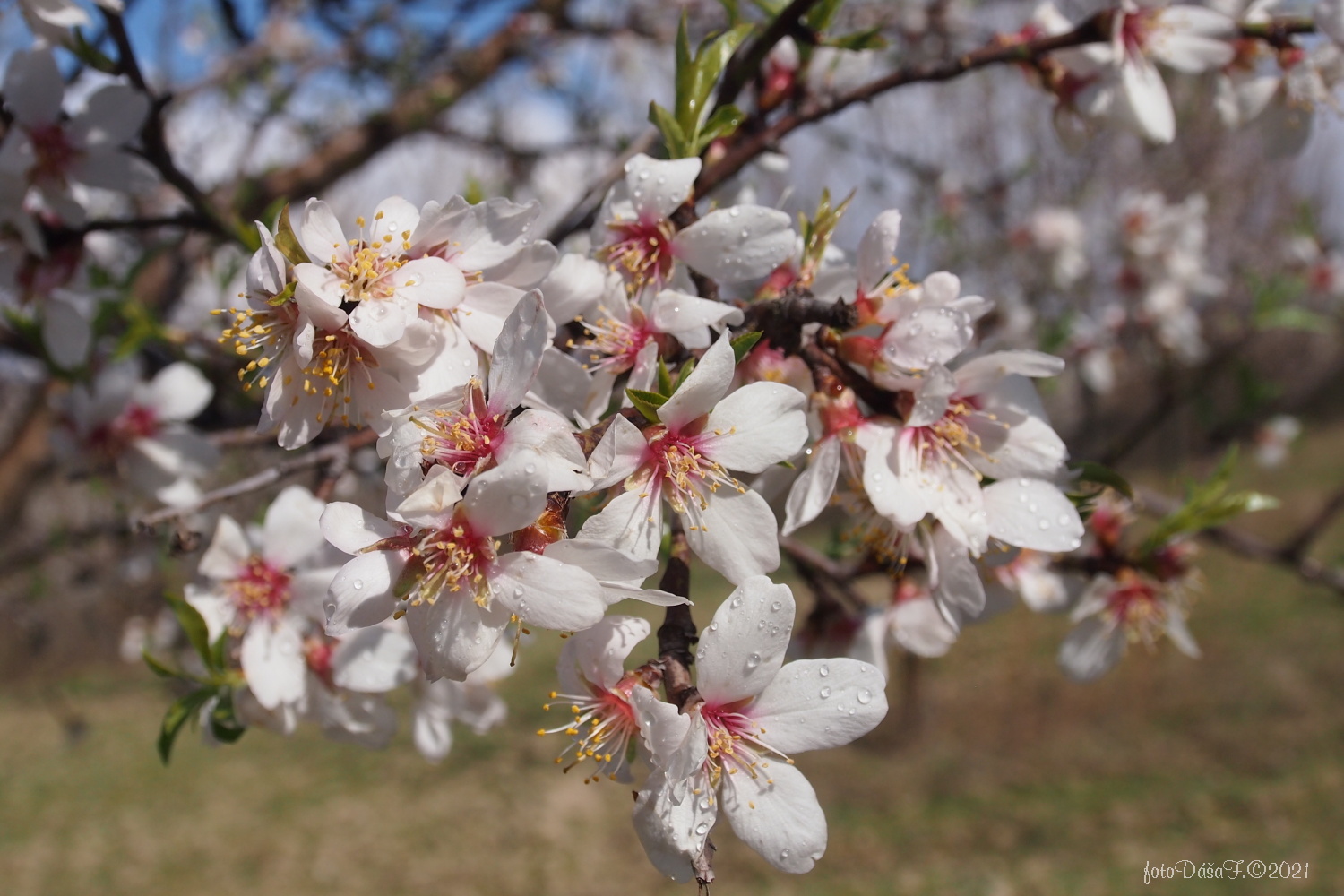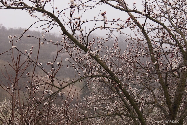 Po chvíli jsme došly k mandloním a na nich nepomrzlé květy,