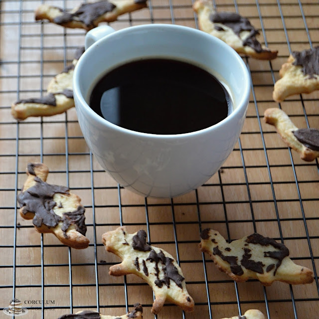 Hotové sušenky necháme vychladnout a namáčímě/potíráme pravou čokoládou či koupenou čokoládovou polevou. Dobrou chuť!