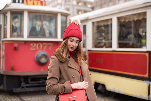 Max Mara coat, Ralph Lauren turtleneck, vintage skirt, Gino Rossi boots, Camelia Roma bags, HM+ DIY hat, Celiné necklace/ ph. Karol