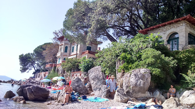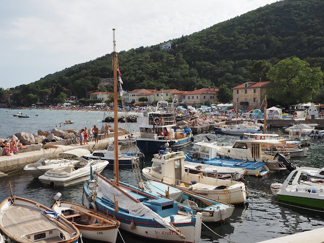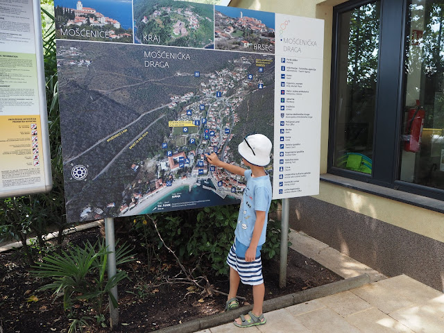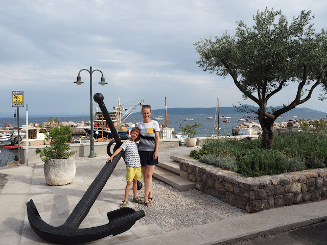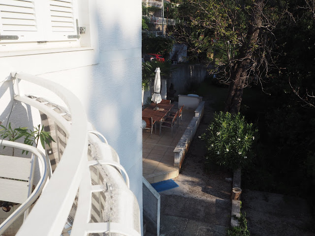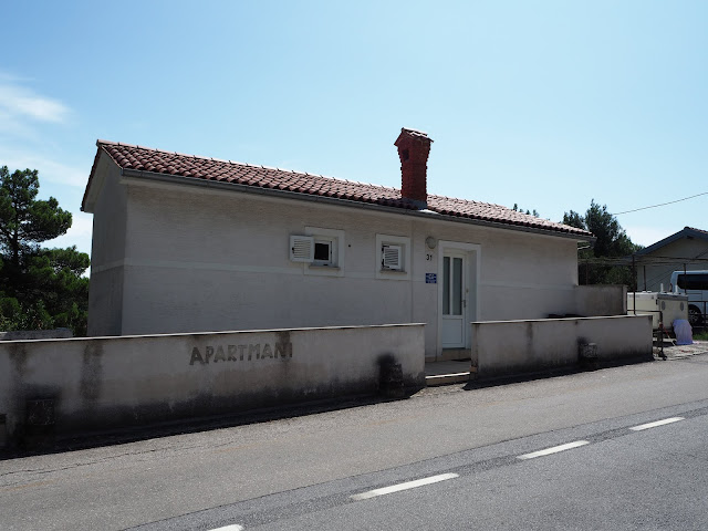 … který měl jednu jedinou, za to velikou vadu. Byl u hodně rušné cesty, která na fotkách z airbnb nebyla vidět. Bertík to místo ukazuje. Cesta je schovaná mezi stromy. Ta co směřuje na Pulu. Zhruba do dvou do rána a pak znova od šesti je hodně hlučná. Bylo to nečekané "překvapení". Škoda, protože se mi tam jinak moc líbilo. Na pláž pomalou procházkou asi 15 minut, vybavenost i cena přiměřená, klimatizace fungovala (zapínaly jsme ji když jsme tam nebyli, aby jsme vychladily dům), čisto atd.atd. ...