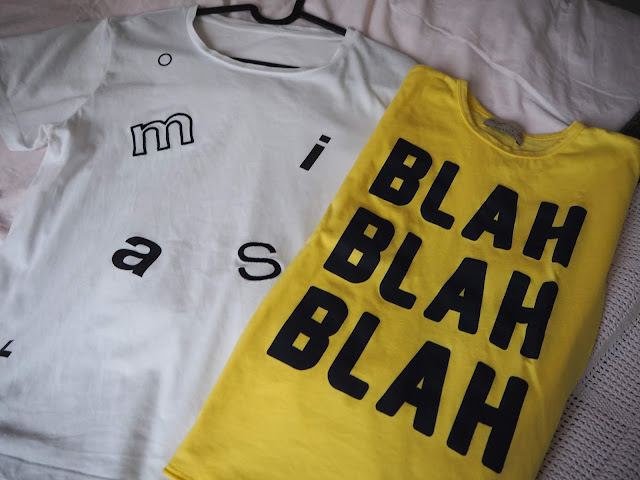 … žlutá barva je čistě náhodná a nemá nic společného s mým jarním žlutým obdobím ;-). Tričko s nápisem „blah blah blah“ ani v jiné barvě nebylo. A má svůj příběh. S Bertíkem jsme nakoukli do dětského oddělení, jestli tam náhodou nebude něco na něj. Projela jsem regál a zaujalo mě tohle tričko. Bertík, když chce pozlobit Adama, tak na něj právě „bla bla bla“ udělá. Tím pádem jsme tam tohle tričko nemohli nechat … příběh nekončí … když jsme vycházeli z obchodu, potkali jsme Adama s Míšou :-)). Samozřejmě jsme ho Adamovi museli hned ukázat. To bylo smíchu! …