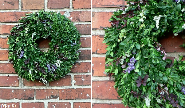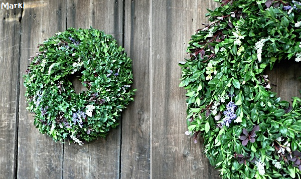 Letní věnec Zveřejněno uživatelem Jenda | 16. 08. 2017 | Zahrada | Letní věneček na dveře …. buxus, bílá modrá levandule, červený a panašovaný dřišťál.