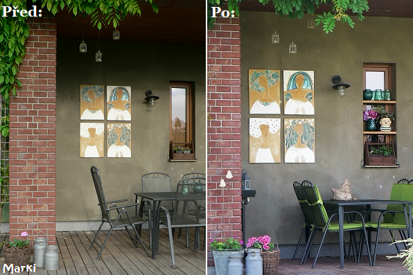Když jsme vybírali okna pro náš dům zvolili jsme odstín zlatý dub a abysme rozbili velikou plochu našich dvoumetrových oken jsou skla rozdělená hnědou mřížkou, jen na toto okno jsme v zápalu boje zapomněli a jako jediné mřížky nemělo … a protože jsem detailista a s touhle vlastností se těžko žije, přemýšlela jsem co s tím … nakonec mě napadly poličky … konečně je má dušinka spokojená !!!!