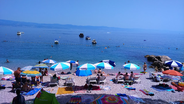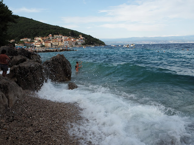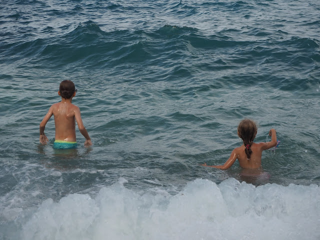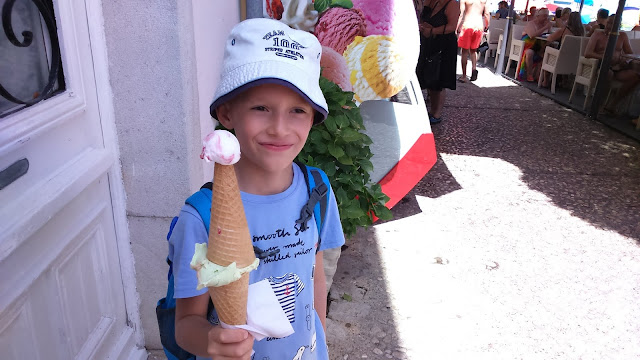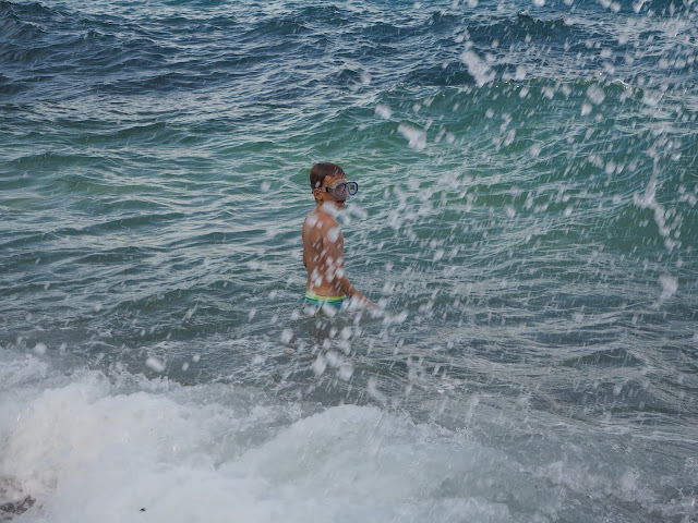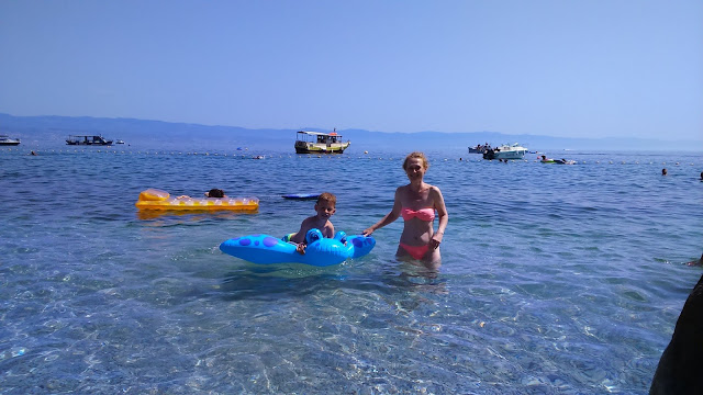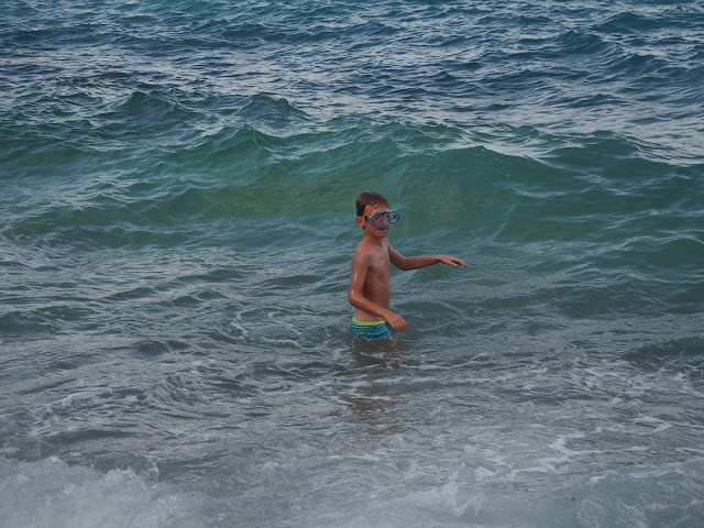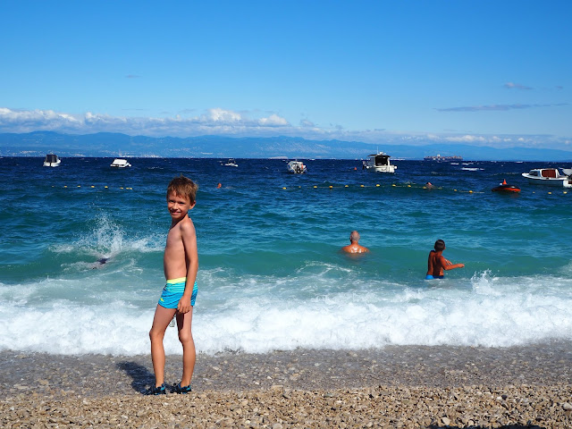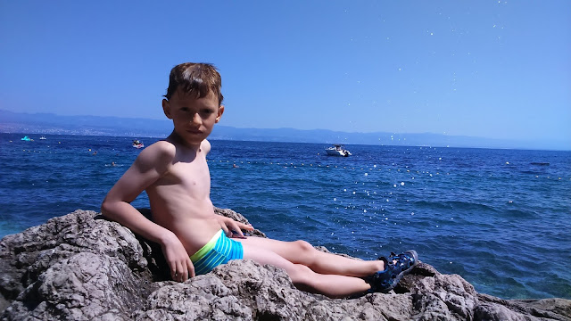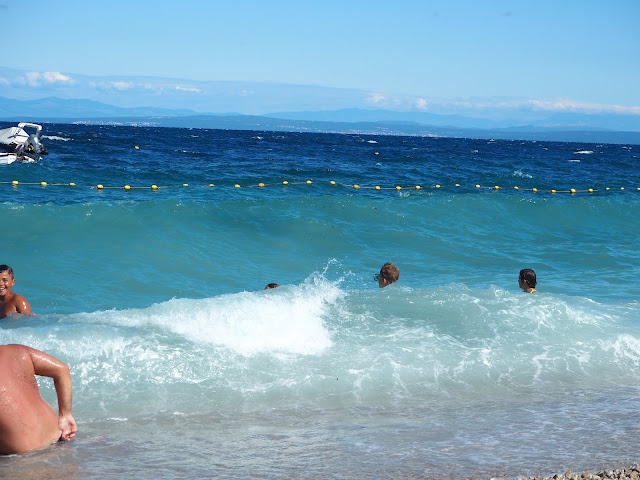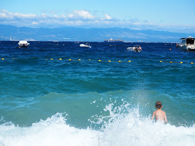 … ale čtvrtý den byl silný vítr a vlny studené a ostré - házelo to i s velkými chlapi. Bertík to nevzdával, ale po třetím "hozením" vlnou přišel s brekem za mnou a ten večer jsme se jenom koukali a šli na zmrzlinu …