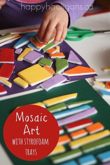 A pak mozaiky z nastříhaných polystyrenových (?) podložek pod masem vysterilizovaných v myčce a nabarvených akrylovými barvami. To bude i 3D a myslímže by to mohlo chytnout i Klárku, kterou už jen tak nějaké „dětské“ vyrábění nebere.