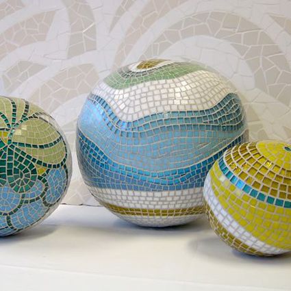 Vůbec jsem netušila, že jsou celkem v kurzu tyto mozaikové koule do zahrad. Některé vzory mě dost vyděsily, ale tuhle prostřední si možná i umím na zahradě představit.