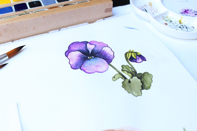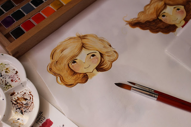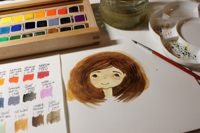 … hned po prvních tazích je jasné, jak velký rozdíl je to od olejomalby… stačí jeden špatný tah, špatné namíchání barev, stačí víc vody a je to mžik, kdy se barva rozpije úplně jinak jež potřebujete… a můžete začít znovu… (olejomalbu můžete opravovat, přemalovávat a předělávat třeba milionkrát…)… proto jsem docela ráda, že jsem se do akvarelu pustila až teď, kdy je ruka trochu jistější…