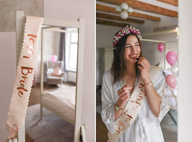 Všechny jsme se vyzdobily těmihle krásnými šerpami, které sehnala Markét na Ginger Ray, parádní výběr. Sem určitě jukněte, mají nespočet věcí, které by se vám mohly hodit nejen na svatbu a rozlučku, ale i jakoukoliv oslavu. U nás se pak dá něco objevit např. na Moje party.