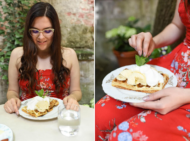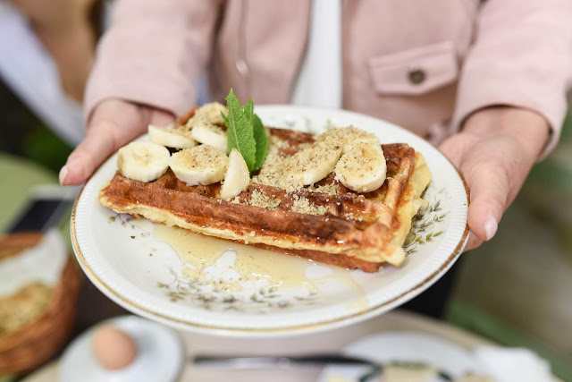 My si totiž ke snídani objednaly dobroty z teplého brunche. Třeba vymazlené vafle s ovocem, šlehačkou a zmrkou. Mají hned několik druhů podle chuti, pak taky vajíčka na všechny možné způsoby, ovesnou kaši, libové párky (žádný Babiš, ale lokální řezník) a taky krupicovou kaši. Když jsem to uviděla na menu, nešlo odolat. Kaši jsem neměla snad věčnost, někdy naposled v dětsví, byla výborná a ten talíř ve mě zmizel během chvilky :D