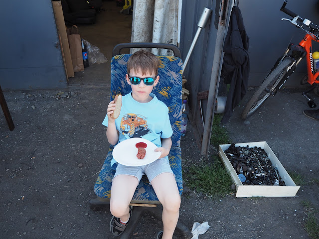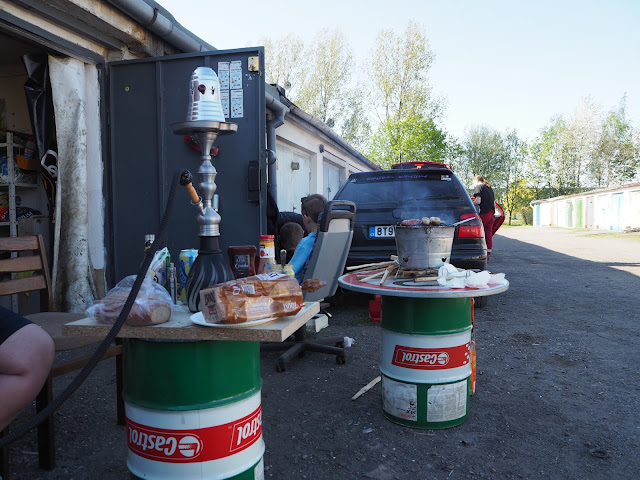 … pokračovali jsme za Markem na garáž. Tam bylo grilování v plném proudu …