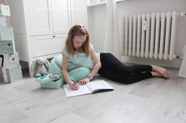 Její koutek v novém pokojíčku bude v odstínech šedé, bílé a mentolové.