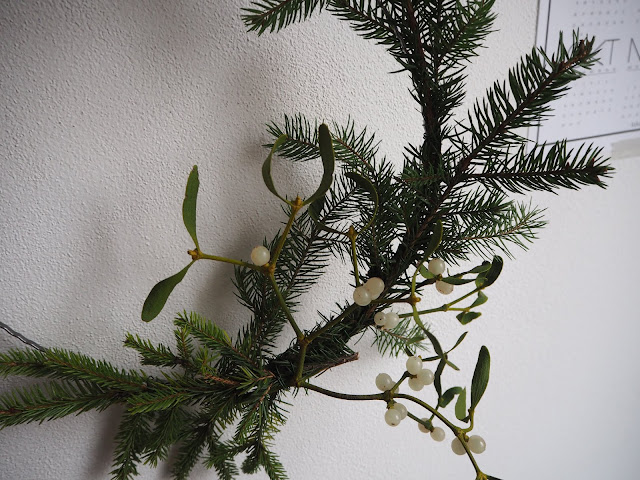 … v kuchyni. Tam podobně jako vloni, ozdobená větev se mi stále líbí …