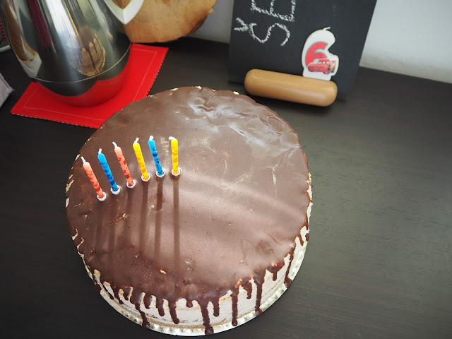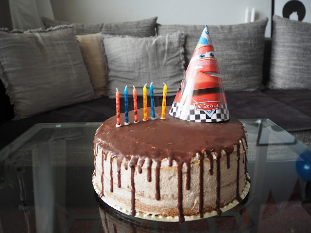 … dorazil mě Bertík, který na dort nechtěl svíčku s McQueenem (na fotce vzadu), kterou jsem schválně objednala a chtěl tam tyhle malé tenké, které už jsme měli doma …