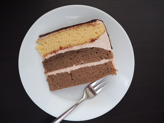 … krému mohlo být více (zůstalo mi krému na ještě jeden dort ) a poleva mě taky pozlobila. Byla řídká a „stékance“, které měla udělat se roztekly až moc 😉 …