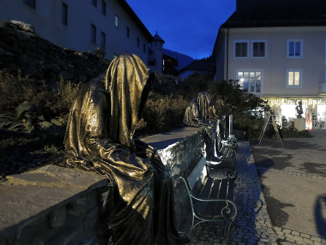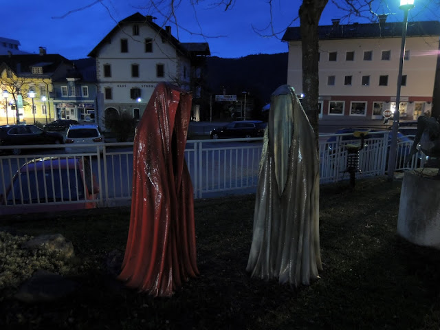 ... měli jsme s Bertíkem chvíli, tak jsme se po městečku prošli a narazili jsme na zajímavé sochy, které mi připomínají postavy z Harryho Pottera - naštěstí nelétaly a byly z bakelitu ...