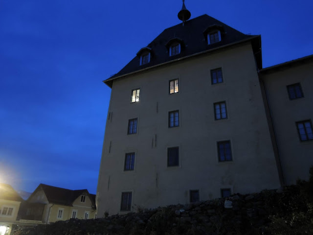 ... těšila jsem se na vánoční výzdobu a ona už sice všude je, ale je připravena na ten správný okamžik, který bude až příští víkend a to my tady už nebudeme. Zašli jsme na "naše" letní koupaliště u Badehaus v městečku Millstatt a to hezky nasvícené bylo ...
