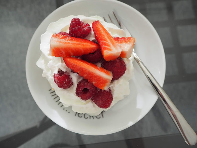 ... jo a taky jsem dnes mlsala. Vloni jsem zjistila, že Pavlova s malinami je stejně skvělá jako ta s jahodami ...