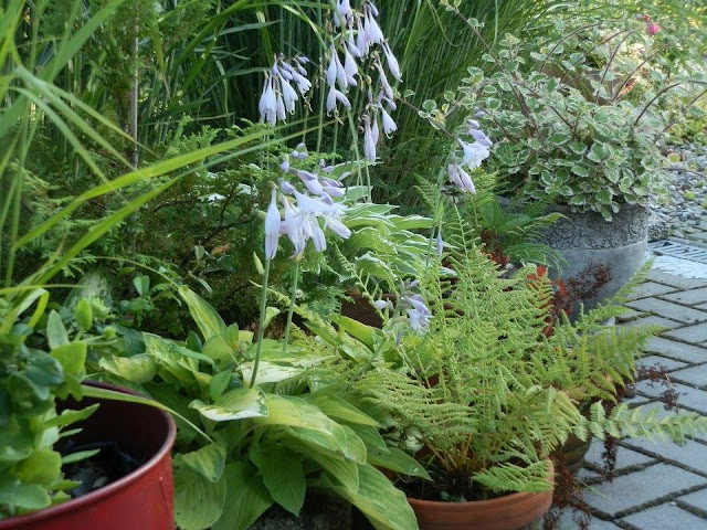 Nádoby osazuji bohyškami, kapradinami, okrasnými trávami, ale také rozchodníkovci či čechravami a dalšími rostlinami. Zatím se jim daří a neschovávám je ani na zimu.