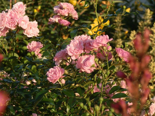 Drobnokvětá růžička (předpokládám, že „The Fairy“) – neúnavně kvete celé léto, ale i během podzimu až do mrazíků, občas vykvete i v prosinci 🙂