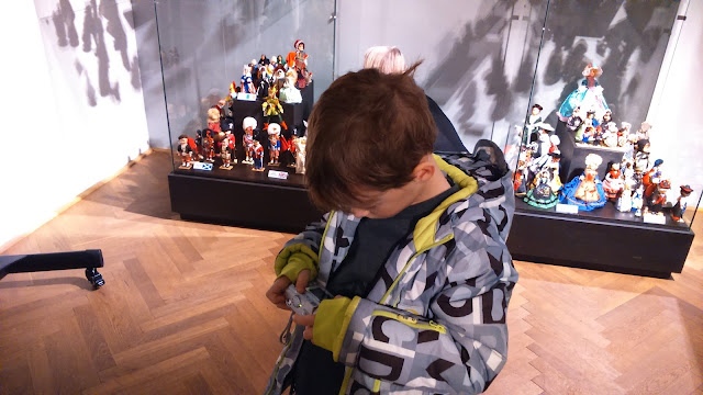 … ale zpátky k výstavě. Vytáhla nás na ni babička. I když se jednalo o výstavu panenek, Bertík se chtěl jít taky podívat. Ony to nebyly panenky na hraní, ale panenky v regionálních krojích z celého světa, které se vozí jako suvenýry z cest. Sbírka patří dvěma polským sběratelkám a do Ostravy byla zapůjčena …