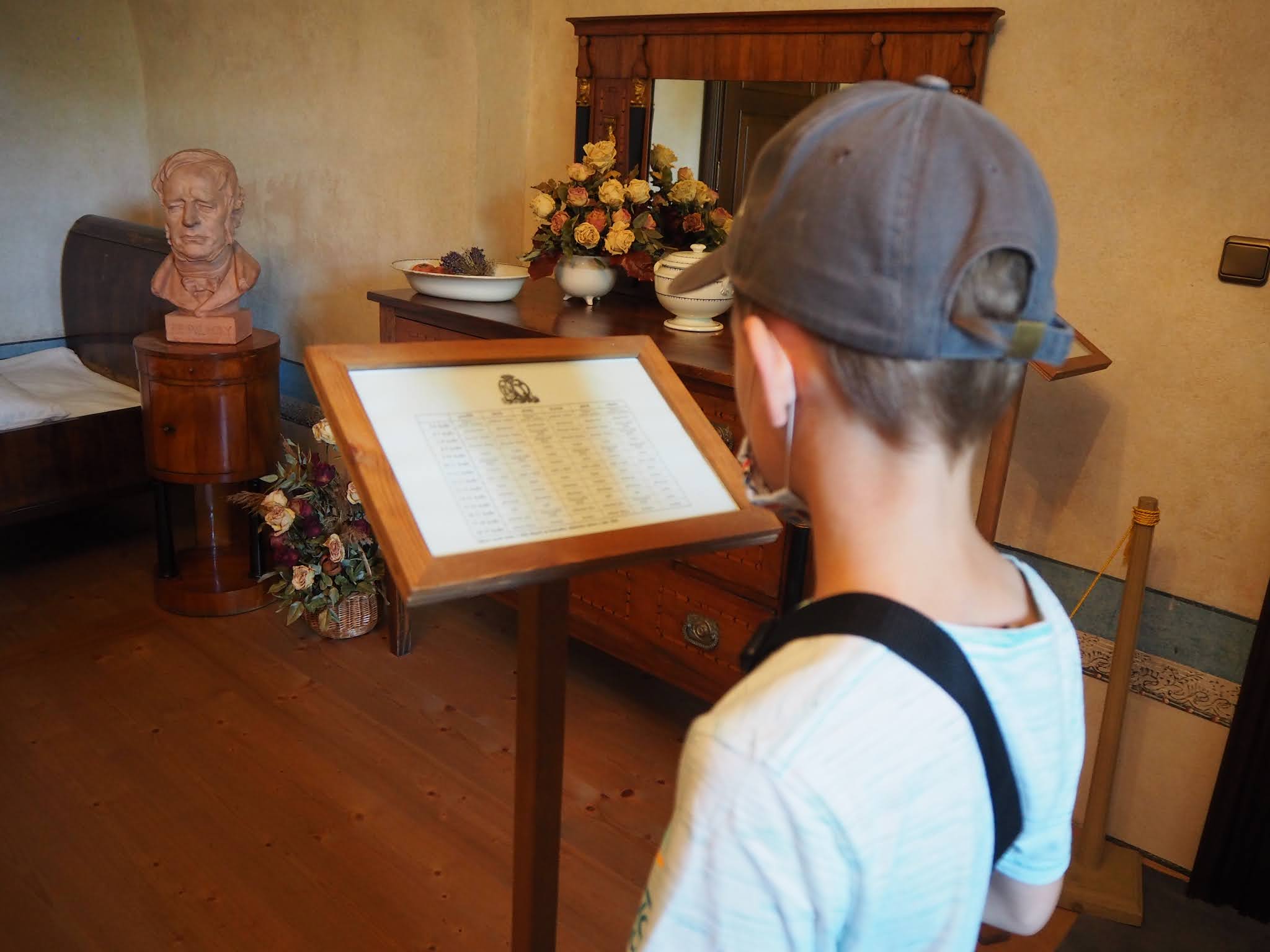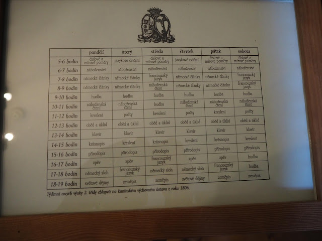 ... na zámku byl i svého času internát pro děti. Bertík pilně studuje jejich celodenní rozvrh hodit - málem z něj omdlel, vůbec se mu nelíbil ...