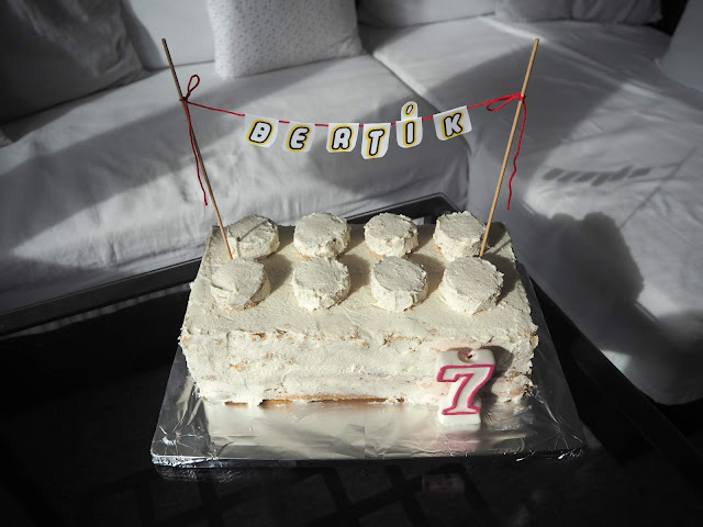 v minulém příspěvku jsem se zmínila o dortu na Bertíkovu oslavu. Bertík byl nadšený a já jsem s výsledkem taky spokojená. I chuťově se povedl ...