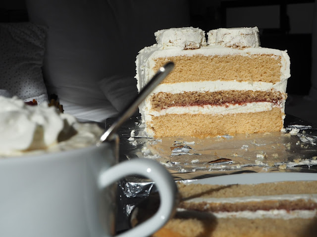 Čistou piškotovou placku jsem udělala z dvojité dávky, druhou ořechovou z jedné, podle receptu tady ...