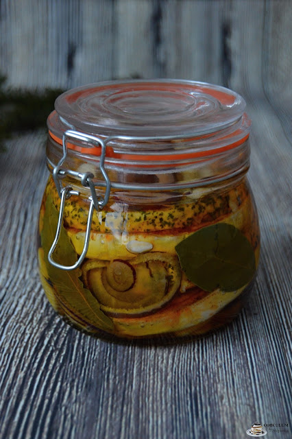 Zbývá již jen vtlačit do sklenice druhý sýr, poklást ho cibulí a dobře zalít až po okraj olivovým olejem. Uzavřenou sklenici s připravenými sýry uchováváme v lednici po několik týdnů až měsíc (v závislosti na trvanlivosti hermelínu). Pokud máte rádi hermelín tvrdší, doporučuji sníst již po týdnu marinování. Můj tatínek naopak vyhledává sýry těsně po záruce, kdy jsou vyzrálé („přezrálé“) a tehdy teprve oceníte vzduchotěsný uzávěr… Dobrou chuť!