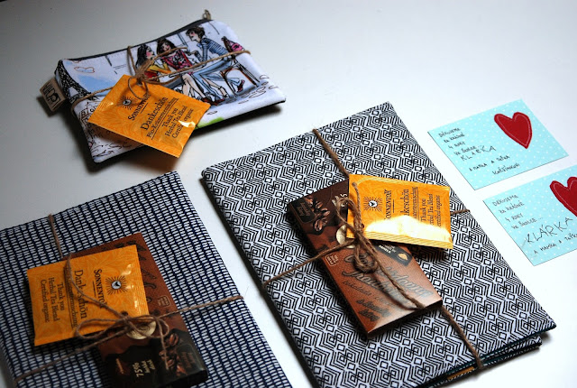 Letos jsme s holkama pro naše skvělé „pančelky“, které snad budou příští rok pokračovat s Terezkou, vymyslely obal na knížku, čokoládu z čokoládovny v Troubelicích a děkovací Sonnentor čaj. Snad se budou líbit..