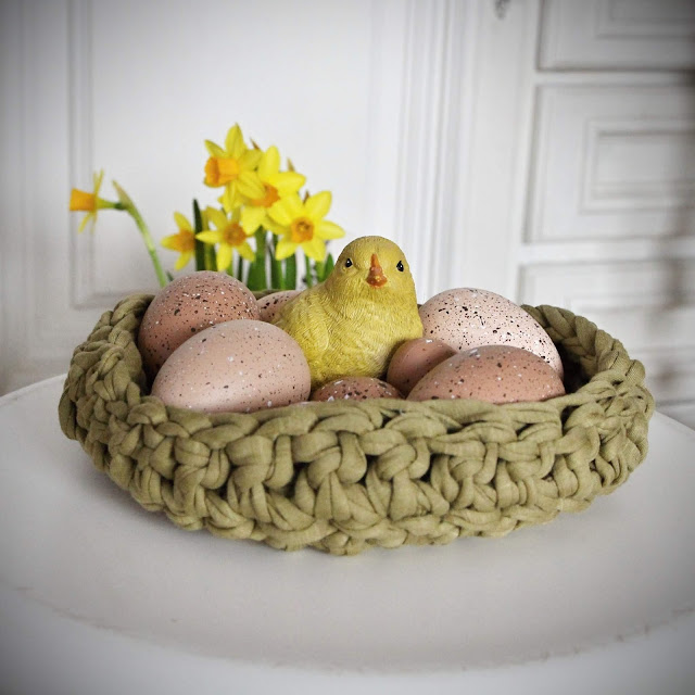 Jejím prvním provázkovým výtvorem byla tato ošatka na vajíčka.