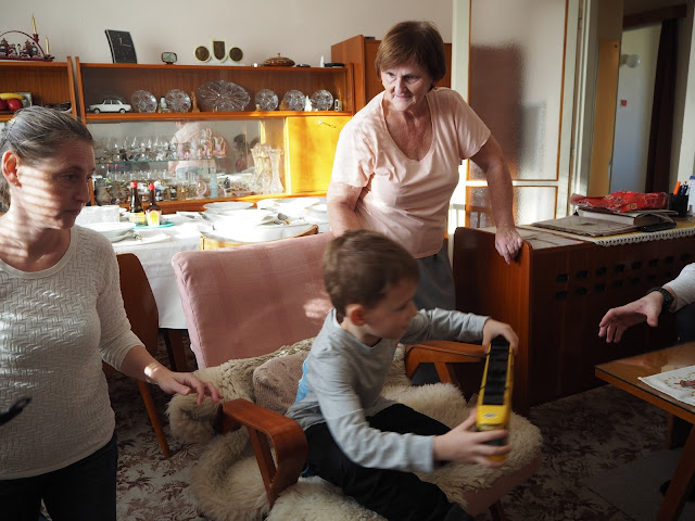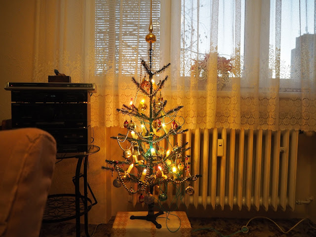 sešli jsme se zase u babičky a dědečka. Tím, že se tam za těch „sát“ let nic nezměnilo, je tam stále mé dětství. Stromeček je stále stejný, jen poloviční. Kdyby to totiž bylo na taťkovi, stromeček by žádný nebyl. Tak si mamka prosadila polovinu :-)) …