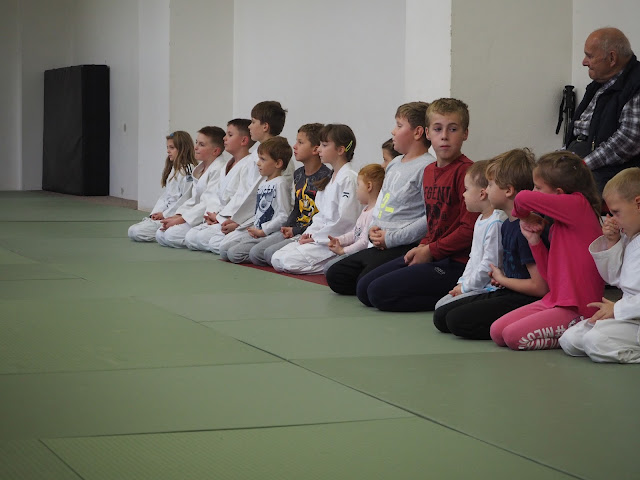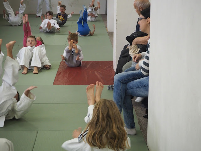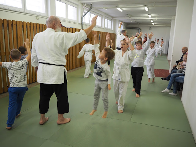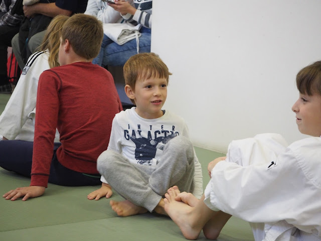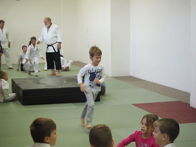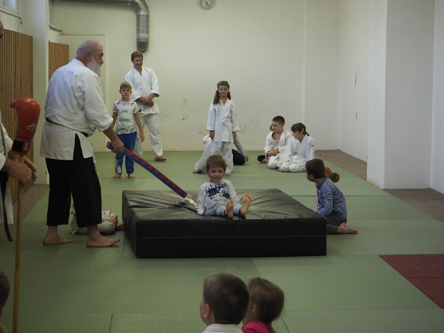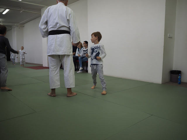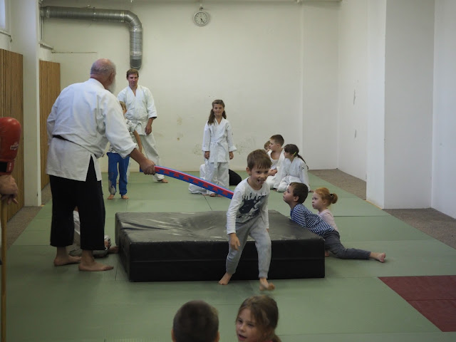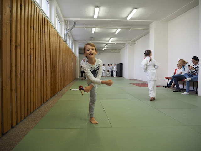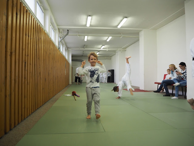 … už byl čtyřikrát a jeho radost neznala mezí. Těšil se kdy zase půjdeme do tělocvičny na aikkido. Nevím co se při posledním cvičení stalo, v průběhu i na fotkách vypadá až do konce spokojeně, ale v šatně mi řekl, že už tam nechce chodit ?. Doufám, že to byla jenom únava, protože mě se tam líbí moc. Vedou to dva starší pánové, ještě stará škola, nic nepřiměřeného. Každý padá a dělá co umí. Když to nejde, trpělivě ukážou a pomůžou jak na to. Dneska odpoledne jdeme zase 😉 …