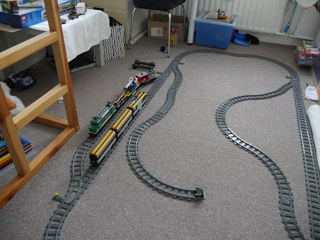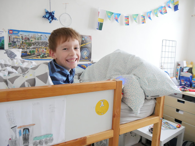 ... ne že by z té postele nevylezl, on tam zase zalezl, aby pořádně viděl na vláčky, které se k mé spokojenosti přemístily z obýváku do pokojíčku a bylo je potřeba náležitě vyzkoušet ...