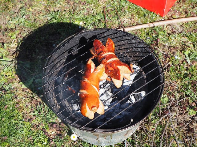 ... v pátek jsme zajeli na zahradu "grilovat". My jsme si to tak nazvali, ale v malém grilu jsme si jenom opekli špekáčky - hlavně byly místo oběda a já jsem po ani nevím kolika týdnech nemusela vařit ...
