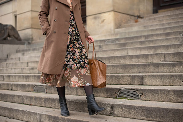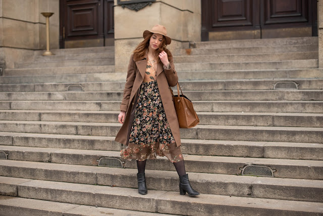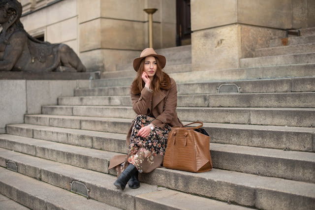 Max Mara coat, Zara dress, boots and bag, C&A hat, Mooyy necklace
