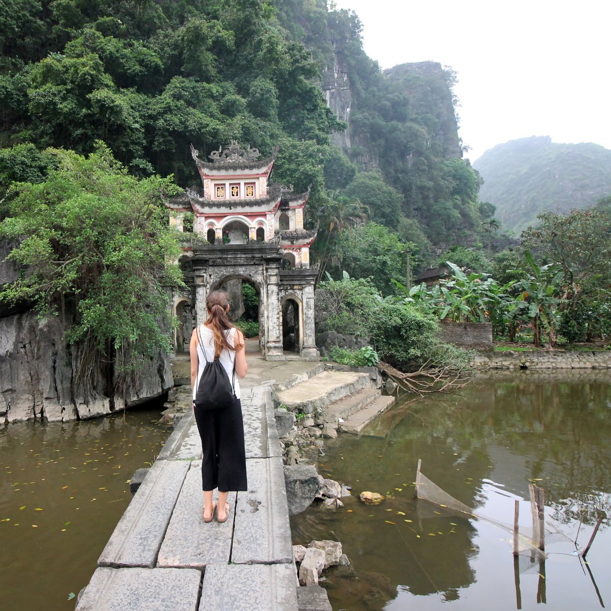 Druhý den jsme si půjčili motorku a chtěli zajet na loďky v Trang An, které jsou na seznamu UNESCO, ale když jsme viděli tu frontu a davy lidí, tak jsme trochu změnili plány a zajeli do Hoa Lu, což bývalo kolem roku 1000 hlavní město. Dnes z něj zbyly jen dva chrámy, jinak nic. Šli jsme na vyhlídku, psali 80 m, ale bylo hrozný vedro, tak se to zdálo mnohem horší. Nicméně výhled byl docela pěkný. Pak jsme nakoukli ještě do jednoho chrámu, vyfotili si bránu, a rozhodli se, že zajedeme ještě na loďky do Van Long.