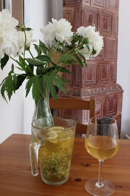 K tomu čerstvá bezinková limonáda, čerstvé obří pivoňky od sousedky