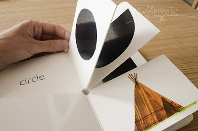 Tuhle jsem pořídila už před časem, ale z šuplíku ji vytáhla až teď. Princip je jednoduchý: k horním obrázkům tvarů přiřazujete spodní předměty – tvarově odpovídající. Madla se do toho teprve dostává. Některé tvary už dává, jiné ne. Možná jsem mohla ještě chvilku počkat, ale neva, časem se to poddá. Nicméně doporučuju spíše od dvou let dál, možná i od tří – dle schopností dítěte.
