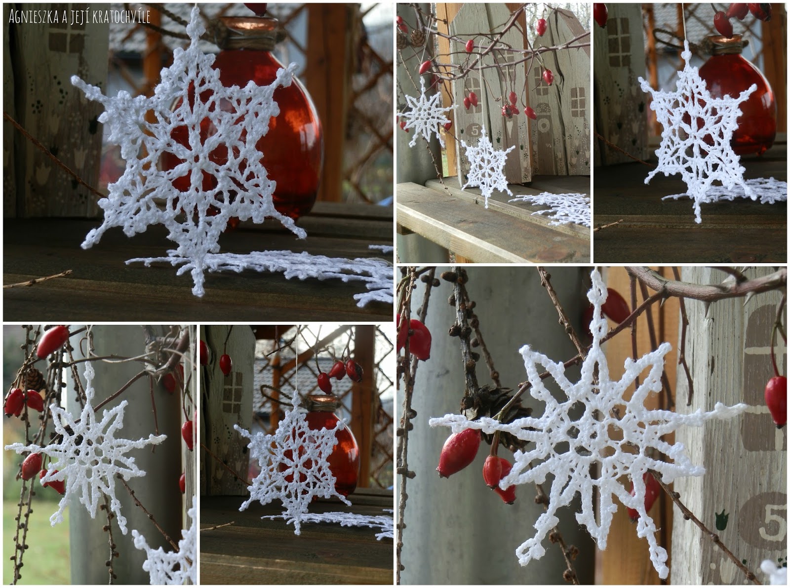 Když se ale naškrobené háčkované vločky zavěsí na větvičku modřínu a šípků… je to nakonec stejně vždycky nádhera, co říkáte?