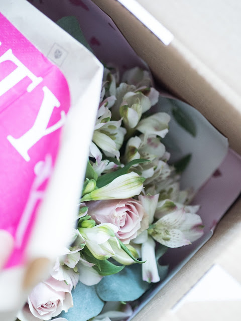 V novej krabici samozrejme nemohla chýbať aj nová kytica kvetov. SWEET je jednou z kolekcie kytíc. Moja je z ružových ruží a alstromérií TU, v tejto kolekcii však nájdete aj iné kombinácie kvetín… Kyticu som dostala v stredu a dnes v nedeľu večer, keď pre vás píšem je ešte krajšia, ako na fotkách… alstromérie sa plne rozvili a je to až neuveriteľná nádhera.
