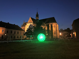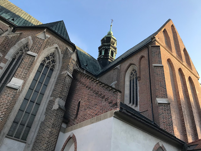 Staré Brno, Chrám Nanebevzetí Panny Marie spjatý s Eliškou Rejčkou… nádherné místo, opatství, klášter, chrám je vklíněn do další zástavby, opodál stojí pivnice pivovaru Starobrno a sám pivovar…v noci to zde žije, městem se linou vůně grilovaných klobás a čerstvého piva…