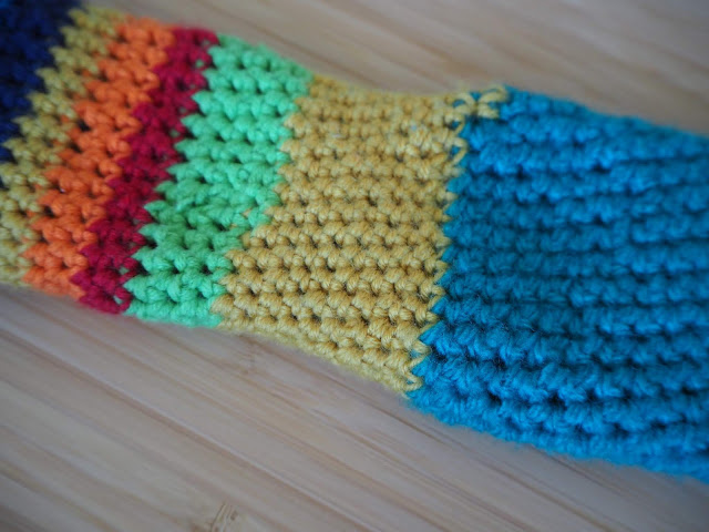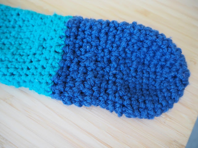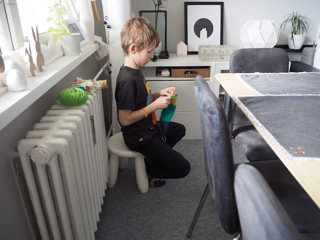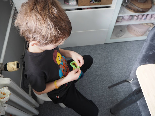 ... Bertík v tomto taky nezahálí. K mému velkému překvapení se naučil háčkovat krátký sloupek. Není to ale má zásluha. Ve škole mají od první třídy ruční práce. Vloni měli pletení. To ale dobře nedopadlo. Podle mě měli špatné jehlice. Byli dřevěné. Po těch vlna neklouže, drhne a jak jsou ruce tuhé, je to složitá kombinace. U háčkování to ze začátku vypadalo podobně, ale když on se pro něco nadchne dopadá to takto ...