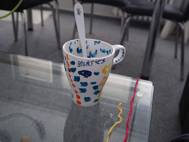 ... i své nápoje k háčkování mívá :-) ...