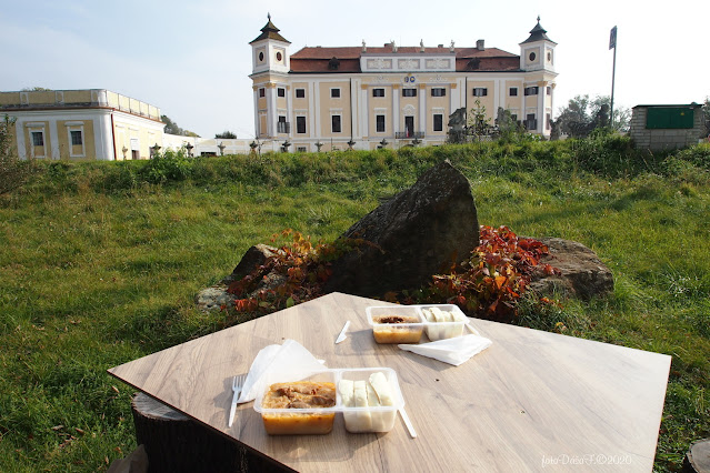 a po cestě si koupily v restauračním okénku oběd s tím, že si ho sníme v zámeckém parku.
