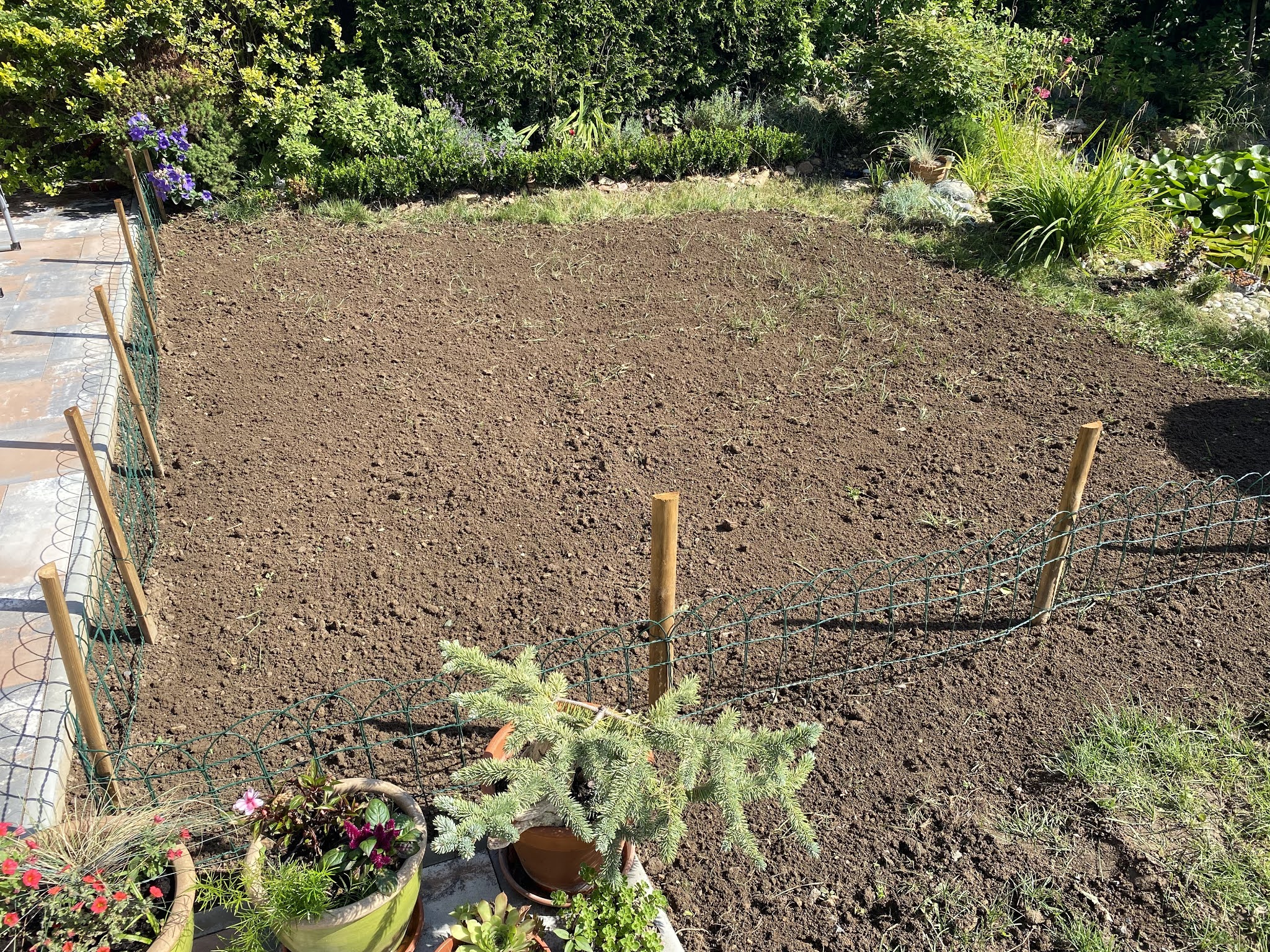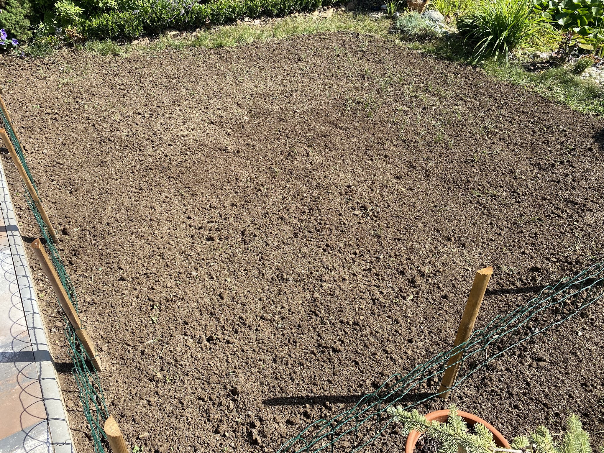 Tak, každý decimetr hlíny jsem okopala do hloubky okolo deseti centimetrů, zbavila plevele a oddenků pýru a jetele, zbytků stavebního materiálů, nedopalků z cigaret zedníků a kamínků. V další fázi jsem hlínu opakovaně a všemi směry prohrabovala a srovnávala tak, abych vytvořila nepatrný sklon směrem od terasy k jezírku. Kvalitu hlíny jsem neřešila, protože sem byla do těchto míst před osmi lety navezena nová hlína. Travní semeno jsme zakoupili v Hornbachu, mělo by být určeno pro vysetí trávníku do zahrady, nikoliv na fotbalová hřiště, tak jako tomu bylo v případě prvního založení trávníku před více než osmi lety. Měla jsem zapůjčený ruční sypač, do kterého nasypete semeno, které je rozmeteno do vzdálenosti dvou metrů. Po bližším ohledání jsem zjistila, že semínka mám i na terase ve spárách nové dlažby, tak snad jsem je odtud dostatečně vymetla. V noci opět pršelo, takže doufám, že travní zázrak na sebe nenechá dlouho čekat.