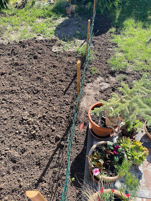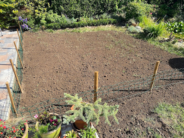 Část trávníku při rekonstrukci domu vzala "za své", a tak nastal čas jeho obnovy, i když na počátku srpna není ideální čas pro tuto činnost z předpokládaných klimatických důvodů při kterých hrozí rychlé vysychání půdy. Jenomže, kdy je příhodný čas? A já jsem netrpělivá! Jdu do toho, snad bude pršet tak jako doposud a travní semeno bude vydatně zaléváno. Příprava dvaceti metrů čtverečních probíhala ve dvou dnech, protože mne první den vyhnal déšť... Bláto jsem měla všude... Musela jsem využívat i technologické pauzy, které sloužily zejména k tomu, abych se napila a ošetřila stržené mozoly na dlaních. Prostor nového trávníku je ohraničený plůtkem, aby sem nevstupovali psi a nenosili hlínu do domu. Psi plůtek respektují, kočka nikoliv.