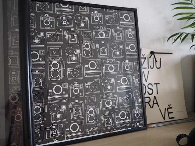 když jsem objednávala papíry na obrázky do obýváku, přidala jsem do košíku ještě nějaké další a taky jeden do ložnice. V ložnici mám obrázek s výkresem fotoaparátu a přišlo mi, že tento by se k němu mohl hodit. Mám ráda věci ve dvojicích …
