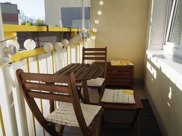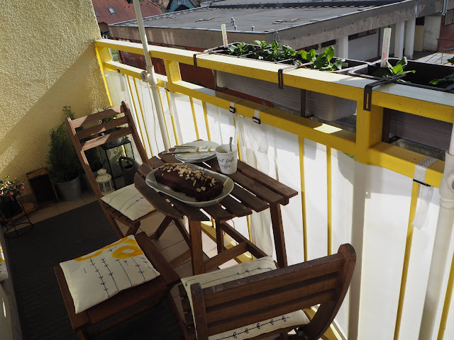 tady si letos užívám při teplém počasí všechny odpolední kávy. Zatím se tu dá sedět, sluníčko ještě tak moc nepálí a většinou i příjemně fouká. V létě to je horší, ale i tak tam rádi obědváme ...